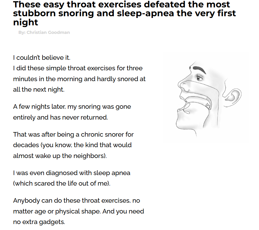 Most Amazingly, the Stop Snoring Exercises I’m About to Teach You: Work immediately – Use them for 3–7 minutes today and experience the amazing results as soon as tonight.