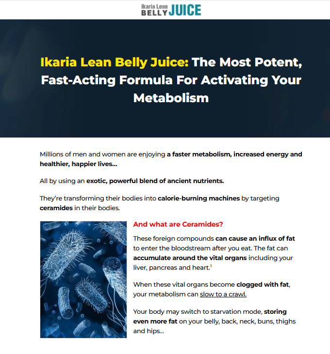 Ikaria Lean Belly Juice is a powerful new formula that makes weight loss easier, faster and much more fun…It’s different from every other solution out there because it targets the newly discovered root cause of tenacious body fat and unexplained fatigue…